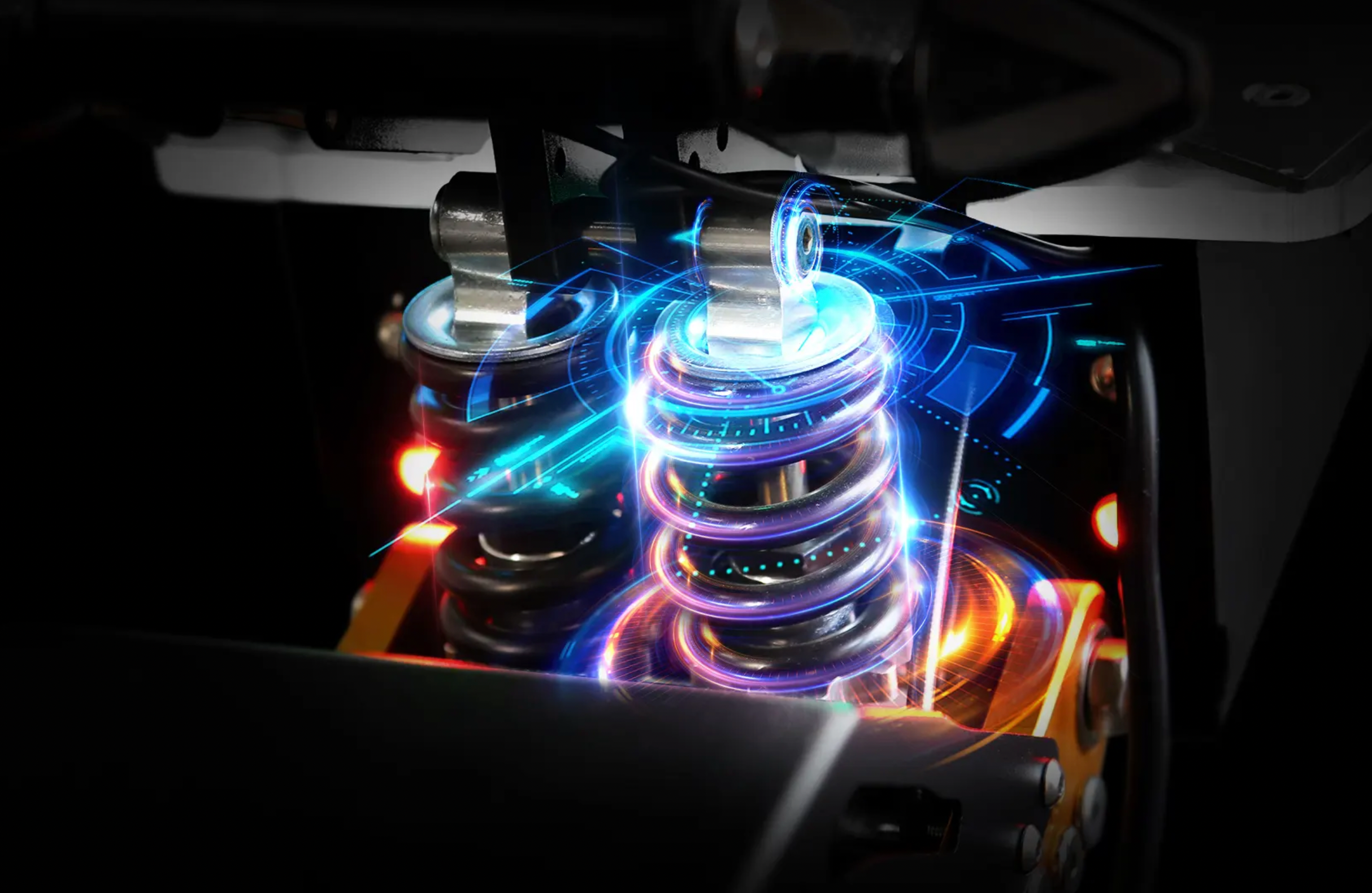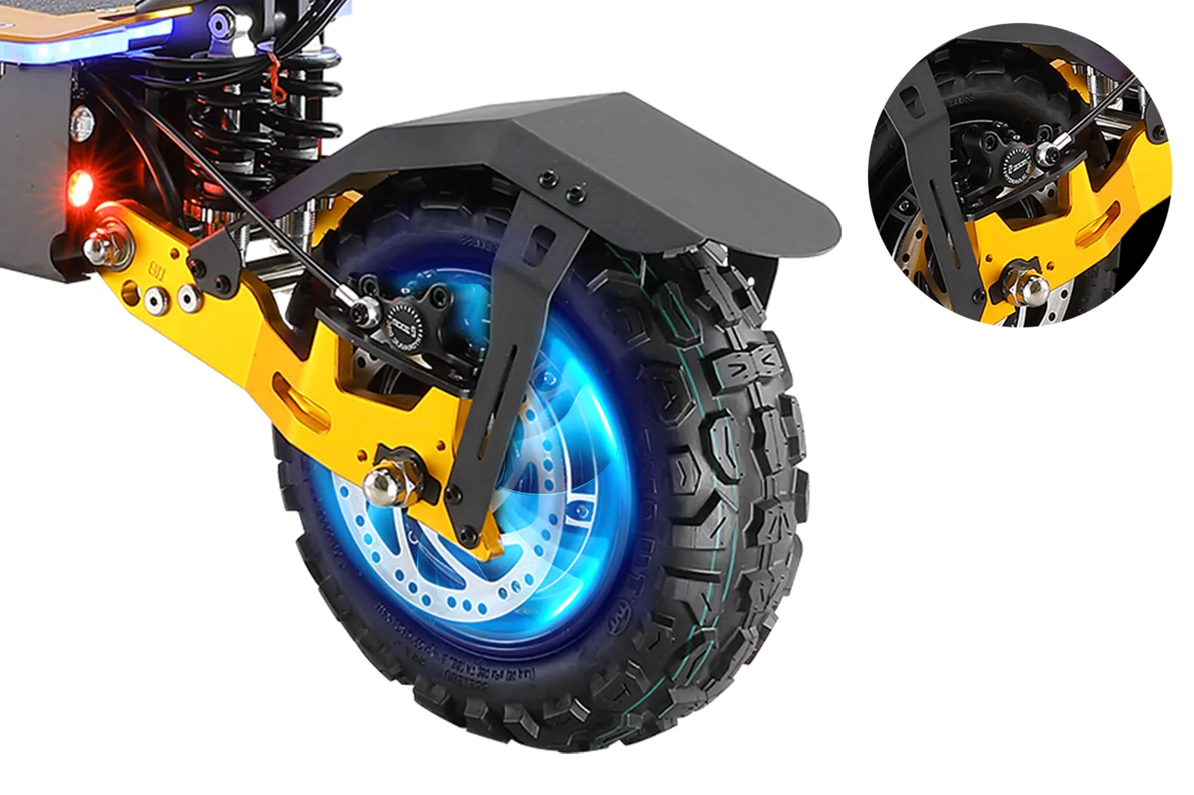 Med dubbla bakre stötdämpare och breda off-road-däck kommer du uppleva en förbättrad komfort och prestanda på ojämn terräng. Den integrerade styrdämpare minimerar effektivt vibrationer och stötar, vilket garanterar en säker och bekväm höghastighets åkturer över olika landskap.